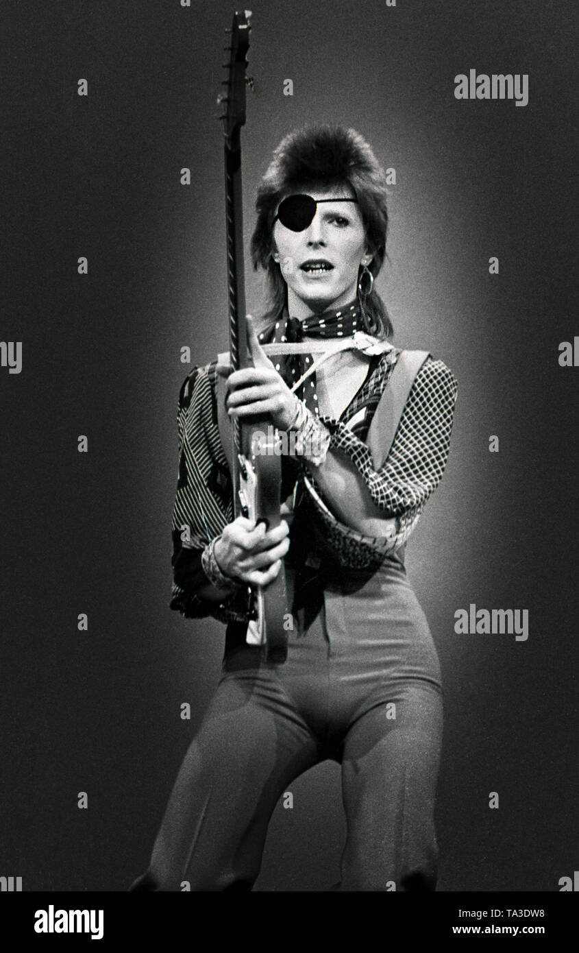 Hilversum Holland February 13 David Bowie With Eye Patch Performs Rebel Rebel In The Top Pop Studios Hilversum Holland On February 13 1974 Photo By Gijsbert Hanekroot Stock Photo Alamy