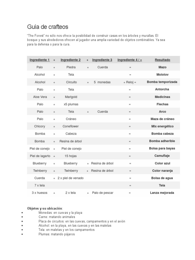 Check out the crafting materials you need to use in The Forest all crafting recipes. These items are objects that can be collected and used by the player. For information on vanilla Minecraft items see this page. Actualizacion de datos icetex. Todos los Crafteos Explicados. Algunos de los siguientes objetos.